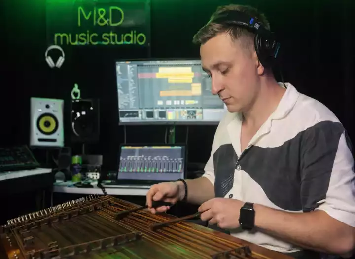 I arrange and record live instruments quickly, combining authentic folk sound with modern production.