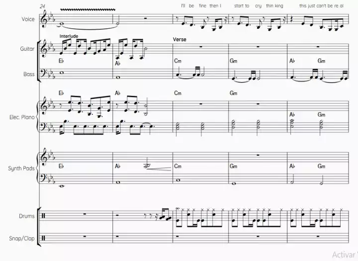 You’ll receive a full band transcription, including lyrics written above the notes, chord symbols, dynamics, expression markings, and much more!