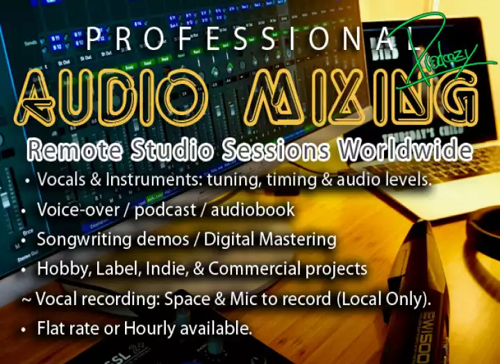 Pro Audio Mixing & Editing. Worldwide. Hip Hop/ EDM/ Latin/ Rock/ Audiobook/ Podcast for $50
