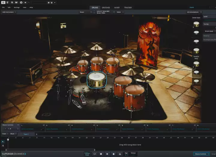 • Extensive virtual drums and percussion collection from top tier manufacturers (SD3, GGD and many more);