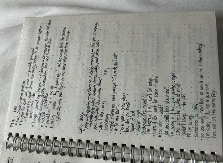 1. An all-remote revision where you send me your lyrics/melody (and/or a demo if you have one), and I provide you with constructive annotations and in-depth notes. I will look for organization, storytelling, flow, feeling, word choice, and more - if you have something specific you want to be improved (such as structure or any of the above), let me know and I will tailor my comments to that. At the end of the day, it's your song and you get to decide what to do with it - I only offer a new and objective perspective to help you discover the strengths and shortcomings of your writings so you can become your best songwriter-self.
